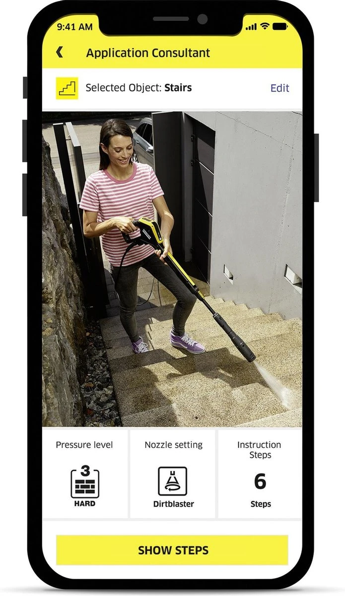 De hogedrukreiniger K 7 Premium Smart Control kan eenvoudig via Bluetooth met de smartphone worden verbonden. Dit betekent dat de gebruiker via de Kärcher Home & Garden-app wordt ondersteund met praktische tips, trucs en instellingen voor veel schoonmaaksituaties en schoonmaakobjecten. De app biedt handige functies zoals de toepassingshulp voor nog betere reinigingsresultaten, montage-instructies, verzorgings- en onderhoudsinstructies en het Kärcher-serviceportaal. Het toestel heeft een boost-modus voor extra kracht om hardnekkig vuil aan te pakken.